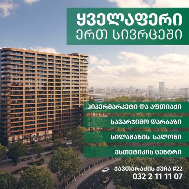 For sale: a 55 sqm two-room apartment, with a green frame. In a newly built completed building. The building is 100% loaded. The building is located at 3, I lane of Petre Kavaladze street, behind the Kafeli house. The apartment is for sale with a 14 sqm parking space. The price of the parking space is $12,000.