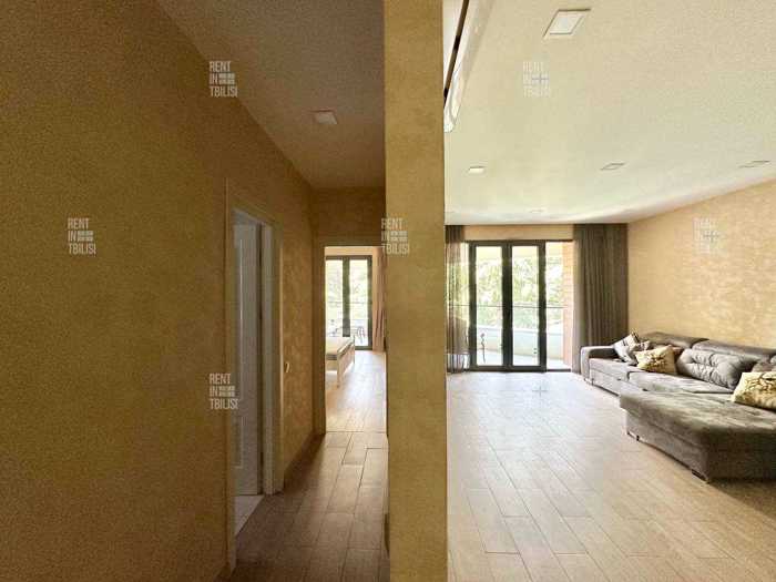 We offer an apartment in the gardens of Tbilisi (second building) with an area of 127 sq.m. well equipped and renovated. In the apartment: Kitchen-living room Master bedroom (wardrobes and bathroom) with a small balcony for accessibility Children's bedroom Hotel toilet with shower system Large terrace Office Utility room The bedroom has parquet flooring, a wardrobe, a children's room, and a study The kitchen-living room, hallway, and wet areas have underfloor heating. One bathroom has a separate bathtub. Each room has an air conditioner.
