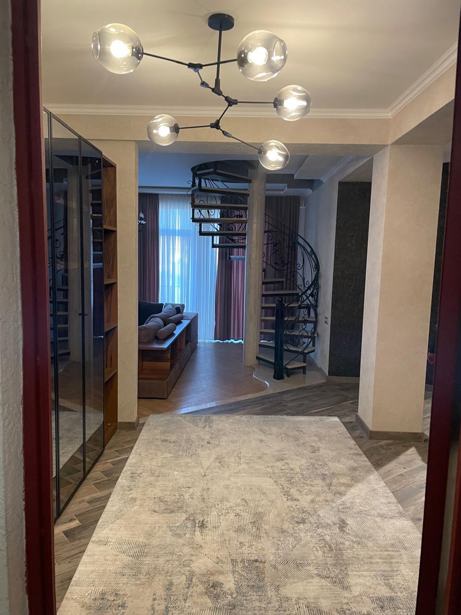 For sale in Gldani on Akhmeteli Street, a duplex type apartment of 232 m2 with four rooms, one stop from Akhmeteli metro, with a veranda, independent kitchen, furnished and equipped, with views. The bedrooms have independent balconies, uninhabited.