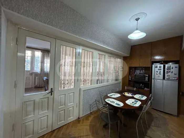An apartment is for sale in Temka, 73 sq.m. The furniture remains in the apartment. There is central heating in the apartment. It has windows both on the front and back sides. One room also has a balcony. The elevator is working. There is a school and a kindergarten nearby, as well as shops and the Aversi clinic. Contact me for details at 577656336.