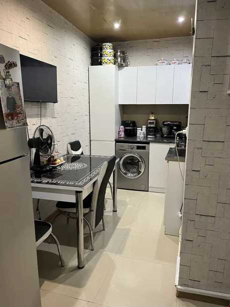 For sale is a 3-room brick apartment designed for a metro project, converted into 3 bedrooms and a studio. Each room has its own window. With Euro renovation and furniture, central heating. With a basement and a garage that has been converted into commercial space (currently rented for 300 laris), but it can easily be converted back into a garage. There is a garden, school, shops, and the new largest Temka park nearby.