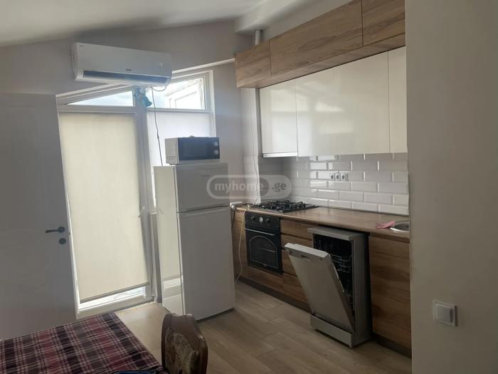 For sale in Digomi, exactly 100 meters behind the Toyota center, a 2-room apartment with a total area of 61.4 sq.m (of which the balcony area is 4 sq.m), renovated apartment, with a built-in kitchen, high-quality kitchen appliances (including a dishwasher), a spacious built-in wardrobe in the bedroom with full furnishings. A washing machine is also included. The renovation is new. The location is ideal both for living and for rental purposes. The building has a closed yard of 1400 sq.m, absolutely safe for children. The entrance to the yard and the entrance doors to the staircase are secured (with chips). Near the building, there are markets and a pharmacy. I am selling it solely for expansion purposes. Therefore, if you decide to rent it, we can stay for a period of 4 to 6 months and pay the rent. I am the owner, 577509969 Tea.