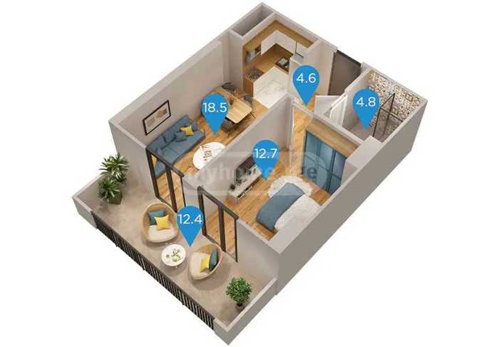 For sale is a 3-room apartment of 69.4 sq.m on the 8th floor (8) in Mukhiani, at the end of Gobronidze Street, at 34 B. Bayramashvili St. (white frame) in a high-quality residential building. We have a choice of floors. The building is delivered and occupied. Construction company GS DEVELOPMENT.