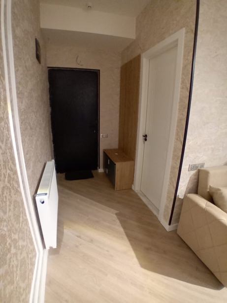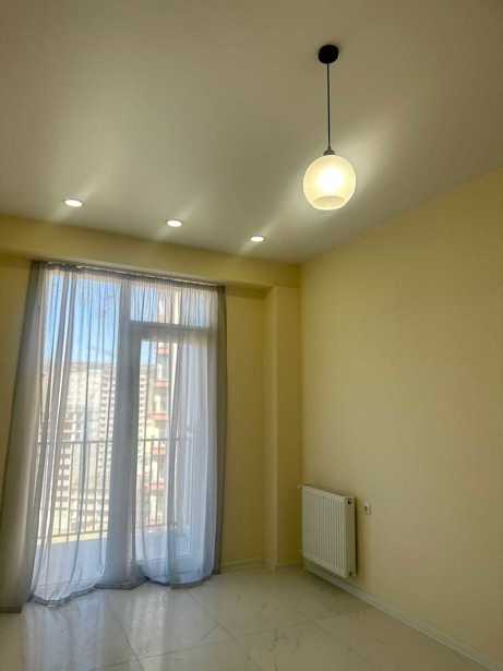 For sale is a newly built, bright, and cozy 2-room apartment in the city project, with an area of 48 sq.m, located on the 5th floor of a 7-story building. The apartment has one bedroom, a living room, and a balcony. High-quality materials have been used in the interior, with a glazed frizelina wallpaper on the walls and the ceiling made of gypsum board, which gives warmth and comfort to the space. This makes everyday life much more convenient, and there is also a clean and modern bathroom. The bedroom is equipped with curtains, ensuring coziness and tranquility. The apartment is ideal for those who appreciate a new environment and functional layout.