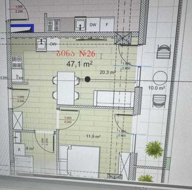 For sale is a 27.8 m2 apartment in a newly built complex by Ensidi Development. The apartment will be handed over in June and will be ready for renovation, it is a green frame. It is located in a favorable area (near Bob Walsh Street, behind Domino's and the US Embassy), where the real estate prices are constantly rising. There are many universities and sports schools nearby, making it a profitable investment for renting out.