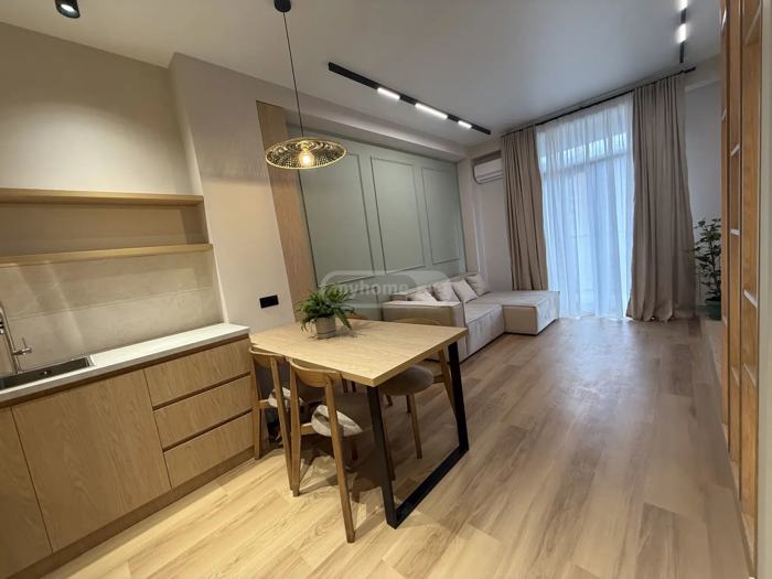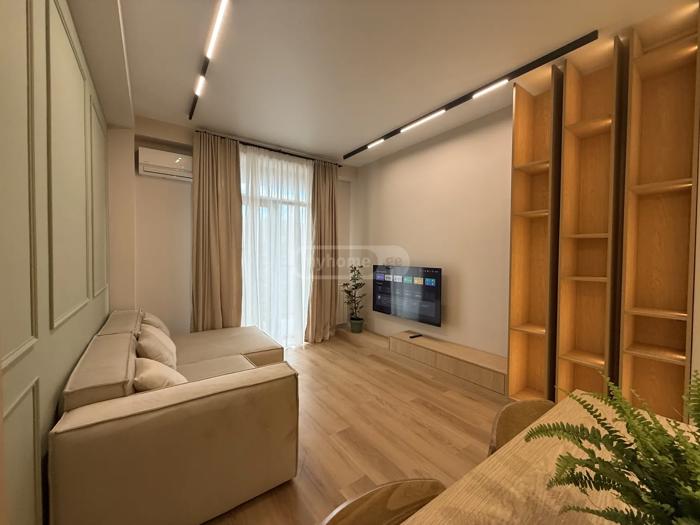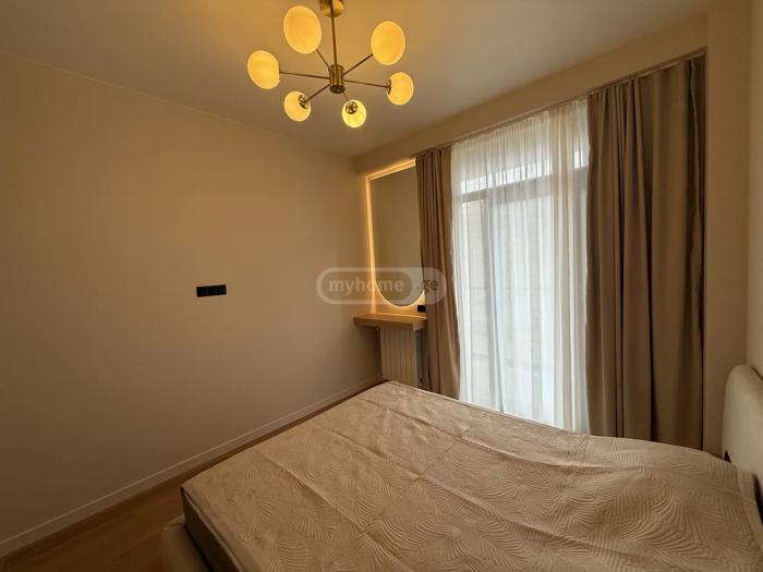 A warm and bright apartment is for sale in the new complex of Dona Palace on E. Mindeli St. #8a. The apartment is furnished with all necessary furniture and appliances.