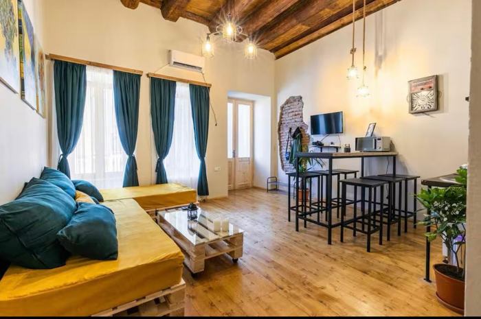 In the historic part of Old Tbilisi, in Sololaki, on Ivane Machabeli Street, a high-ceiling (4m) apartment is for sale. Everything you see in the photos is included. It has an ideal location, it's a very good option! For additional details, please contact: 555361888 Lasha