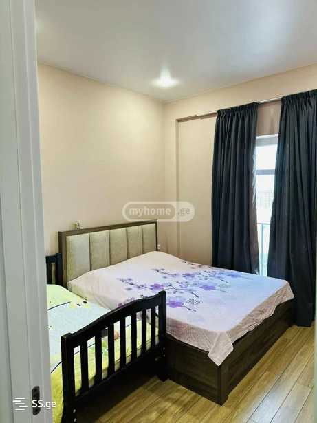For sale: a 3-room apartment with 2 bedrooms. Near Vazisubani roundabout, on Shandor Petefi Street. Newly built building. 65 square meters, 11th floor of 13. Uninhabited apartment with furniture and appliances, central heating.