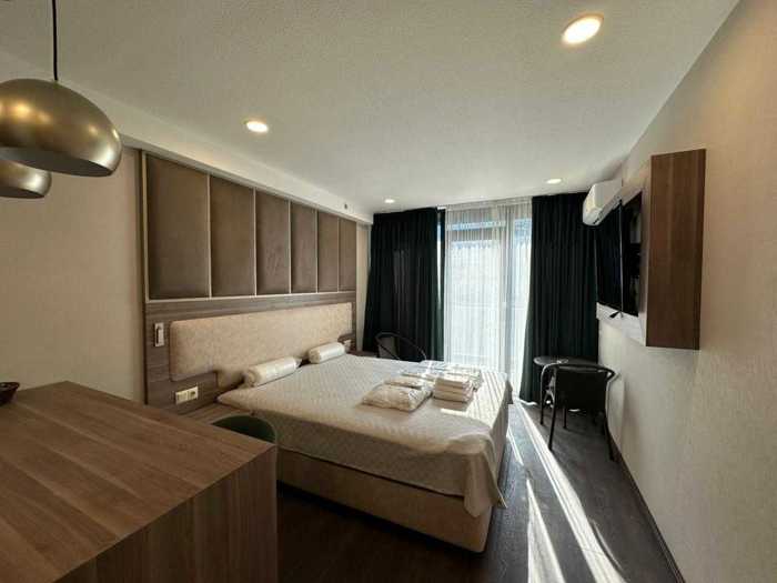 Studio for sale in Mgzavrebi Seaside complex. The apartment is located on the first line from the sea, the distance to the beach is only 75 meters. Fully equipped with furniture and household appliances. An excellent solution for both rent and investment. Lot 3482AK