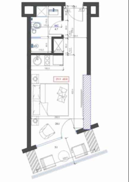 #2571 For sale apartment 36,500 $ 30 sq.m studio. 12th floor Adlia Street, in the Elth Building complex "Rainbow" 100 meters from the sea, with a sea view. The complex is functioning. Good for investment, for renting out. (New Boulevard) Black frame, (the cost of bringing construction material and moving in has been paid) Price 36,500 $