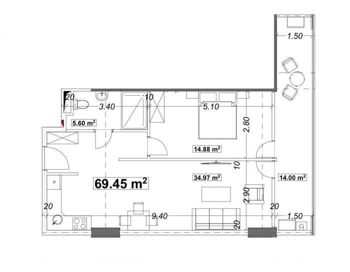 For sale in OPTIMA The lowest price in the complex is only $799 per sq.m! A spacious apartment with two separate bedrooms for sale in the under-construction OPTIMA complex, in black frame condition, with floor seams, and a beautiful mountain view. Area: 69.45 sq.m. Floor: 2 / 18 Gas line is installed. Keys will be handed over at the beginning of next year! The complex will have a SPA zone and is close to several swimming pools, which the owners will be able to use for free after purchasing an apartment in this building. Price: $55,500 An excellent investment opportunity, modern project, mountain views, and the best price in the region!