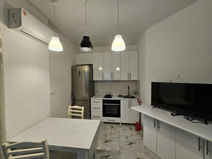 The apartment is located in a quiet and calm place, away from street noise, near a new boulevard, behind the metro station, newly renovated, uninhabited. The construction of the building is completed, most of the residents are already living there, gas is not yet connected, but the gas pipes are brought into the apartment. Until the gas is connected, there is an electric heater in the apartment, which will provide you with hot water in the kitchen and bathroom, as well as an air conditioner for heating/cooling. Internet and television are also available. Italian, high-quality materials have been used, and there is sound insulation as well. The apartment is ready for living. The exterior façade and yard of the building are being renovated. It is stated in the registry as 39 sq. meters, but it is actually 45.30 sq. meters.