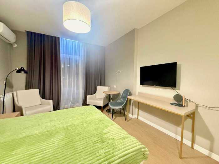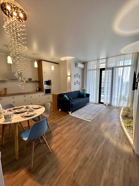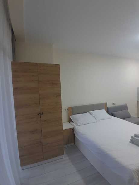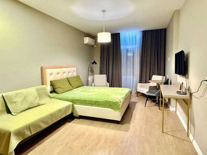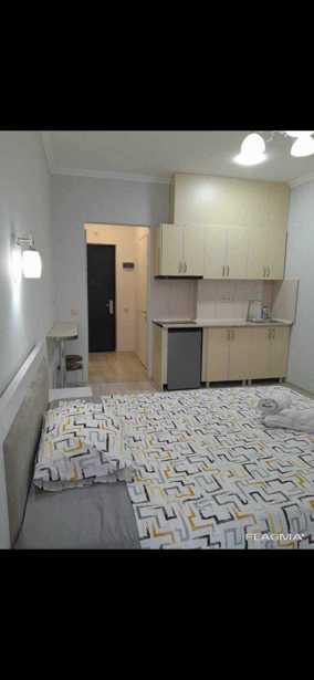 The apartment is a studio type, renovated, equipped with all necessary appliances, refrigerator, washing machine, television, air conditioner, internet, furniture. It is a clean, cozy, and bright apartment, 200 meters from the sea. All infrastructure is nearby, including shops, a pharmacy, a park, and a boulevard.