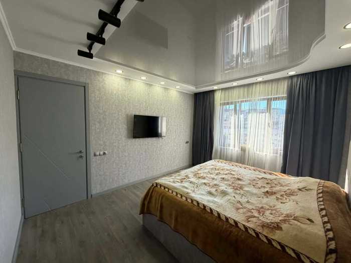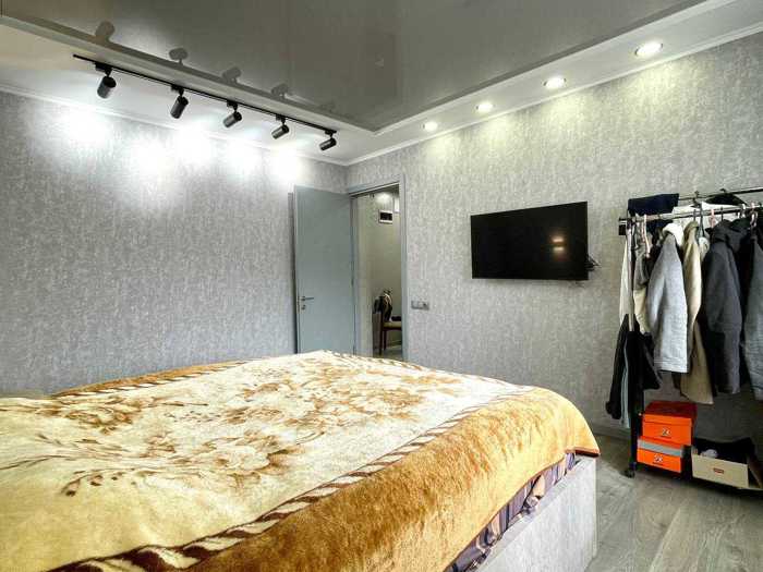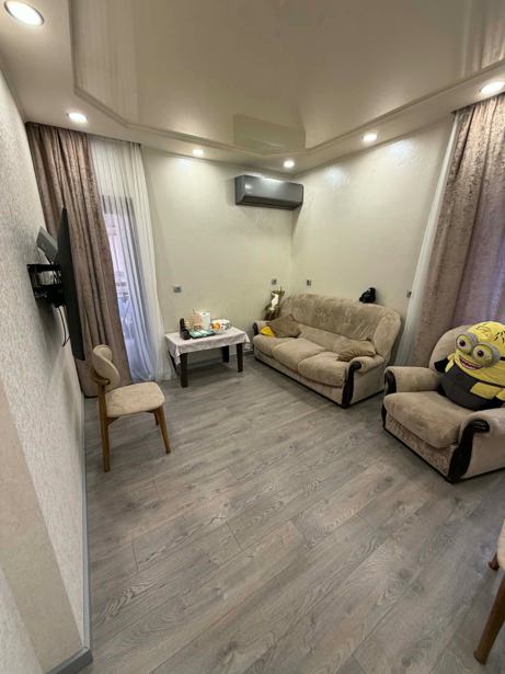 For sale: a three-room apartment on Tabidze Street, at the intersection with Leonidze. It has two bedrooms, an isolated kitchen, and comes with existing furniture and appliances. Size: 77 m2. Price - $75,000.