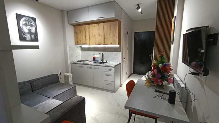 For sale in Batumi on Javakhishvili 30.6 sq m in a new building, on the 6th floor, studio-type apartment, with a separate bedroom, renovated with furniture, appliances, central heating. Price. 49,000 dollars