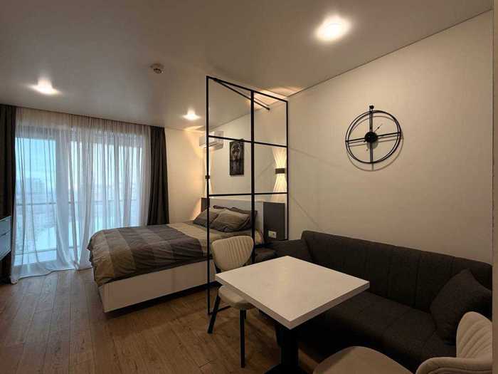 A new cozy zoned studio is for sale in one of the best residential complexes in Batumi on Heroes Avenue at 18 Shartava Street, with a view of Heroes Avenue and the stadium. The apartment is perfect for both living and renting out. Nearby is the largest Carrefour supermarket and the Black Sea Mall shopping center, directly opposite the Stadium and Heroes Avenue, 5 minutes to the sea along the pedestrian avenue with fountains and palm trees. Don't miss such a rare offer!