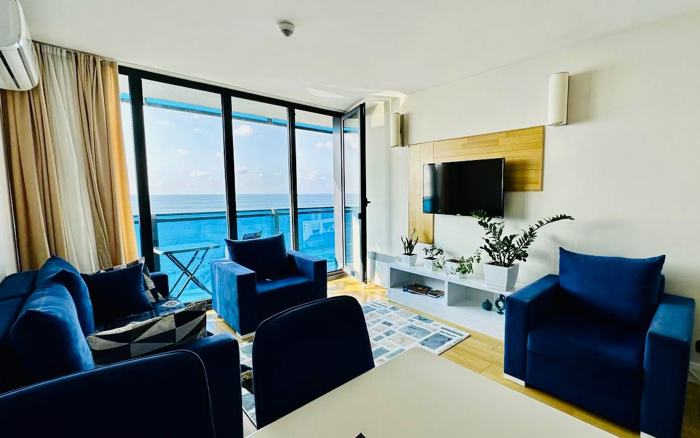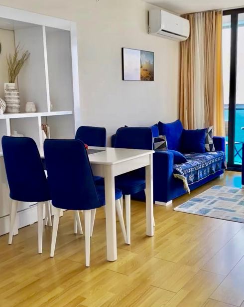 Stylish 3-room apartment "Panorama" for sale in the ORBI CITY complex - first line by the sea! • Area: 78 m² • Floor: 14 • Rooms: large living room with kitchen + 2 bedrooms • Location: first beachfront line, picturesque view of the Black Sea. The bright and very comfortable apartment is fully furnished and equipped with everything needed for a comfortable life or rental: • All furniture: built-in and standalone wardrobes, dining table, chairs, sofa • Appliances: refrigerator, washing machine, 3 TVs, 3 air conditioners, microwave, grill, vacuum cleaner • Accessories: bed linen, dishes, decor • Installed Noirot (France) inverter heaters in each room. Advantages: • Direct, breathtaking view of the sea • Quiet and secluded location in the building • Ideal for living and investment for rent • One of the best options in ORBI CITY. Infrastructure nearby: beach, school No. 6, Republican hospital, boxing academy, new boulevard, Carrefour supermarket, Ministry of Justice, dancing fountains, cafes, restaurants, and shops. Contact: WhatsApp +995 555 16 11 28