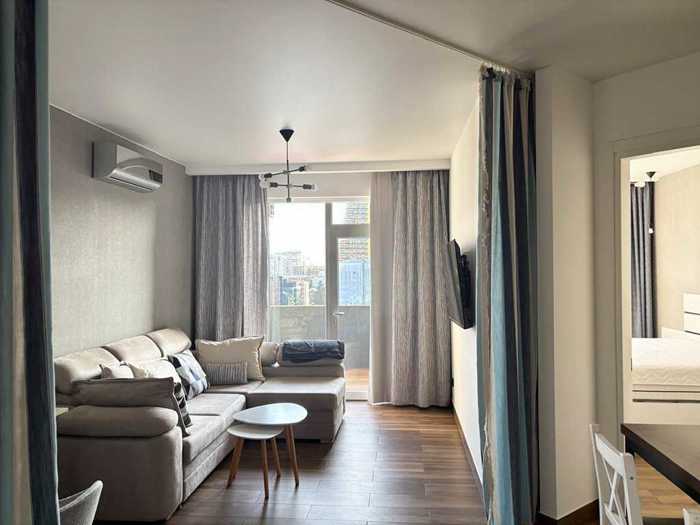Sunny & Cozy 2-Bedroom Apartment, Walk to City Center A spacious 2-bedroom apartment for sale on Lermontov Street – just a 15-minute walk to the sea, near the old center and historic part of Batumi. Located on the 10th floor of a 14-story building. Total area: 53.20 sq.m. Windows and balcony offer mountain and city views. The apartment faces the sunny side, keeping it warm and comfortable year-round. The courtyard features a kindergarten and residential buildings with quiet, green spaces. Thoughtfully designed layout: a cozy bedroom, spacious living room with kitchen area, and a separate work zone that can be closed off with a curtain. Finishes include heated bathroom floors, Italian radiators, gas heating, and an electric boiler for backup during scheduled gas outages. The apartment is new, in excellent condition, and has never been rented. Perfect for permanent residence, long-term rental, or a summer retreat. The building sits in a residential neighborhood with a children's playground nearby. All essential amenities are within easy reach: shops, restaurants, pharmacies, schools, kindergarten, and a vegetable market. Built in 2020, the building is clean and well-maintained with a code lock entry and courtyard parking. Monthly maintenance fee: 27 lari (covers elevator, technical maintenance, and cleaning of common areas). Utility services managed by Sitycom.