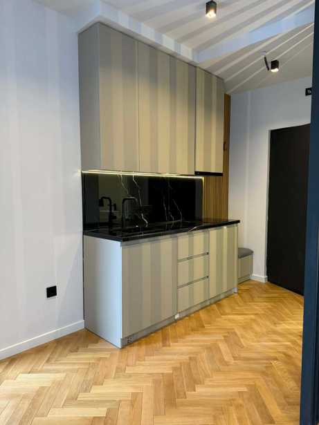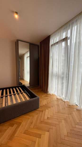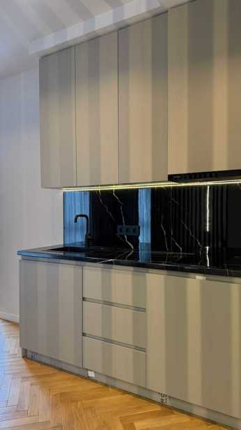 We offer a hotel-type apartment, newly renovated, uninhabited, fully equipped with appliances: built-in refrigerator, induction stove, extractor fan, central heating, air conditioning, washing machine. Furniture: bed, wardrobe, kitchen is installed. With high-quality renovation, solid oak parquet, high-quality mixers and finishing materials. 150 meters from the sea. There is a parking space in the yard, and a children's play area is arranged. The building has 4 elevators and provides security.