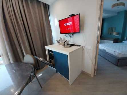 For sale: apartments on the second line of the beach 1+1 with kitchen, hotel, and bedroom. The apartment is in ЖК Orbi Plaza. Renovation - with a key box and housing and appliances. All appliances are of high quality, including a washing machine and LG air conditioners, Ariston stove, Toshiba refrigerator. Each room has its own balcony. The balcony offers a wonderful view of the Turkish side and a beautiful sunset. The area is 200 meters from the beach, close to Batumi's largest shopping center, Grand Mall, supermarkets, restaurants, public transport stations, schools, and other infrastructure facilities. Total area is 54m2. Floor 13.