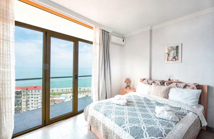 A spacious 1+1 apartment with a separate bedroom and a sea view. The well-designed layout allows for an easy conversion into a 2+1 if needed. The building is located in the tourist center of Batumi, in an area with well-developed infrastructure. Within walking distance: • Grand Mall and Metro City shopping centers • restaurants, cafés, pharmacies • kindergarten, school, university • public transport stops and all essential city infrastructure An excellent option for comfortable living as well as for investment and rental income. 📍 Prime location 🌊 Sea view 🏙 High rental potential 📞 Call or message for more details.