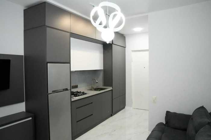 A turnkey apartment is for sale in the new Casa Di Batumi residential complex at 41a Grigol Eliava Street. 30.2 sq. m. and is located on the 15th floor. Renovations and furniture installation are currently being completed. The apartment will be fully furnished and equipped. The residential complex includes: underground and above-ground parking, an open rooftop terrace, a supermarket, cafe, and pharmacy, security and video surveillance, a 1,500 sq. m. green courtyard, a playground, and 600 meters from the sea.