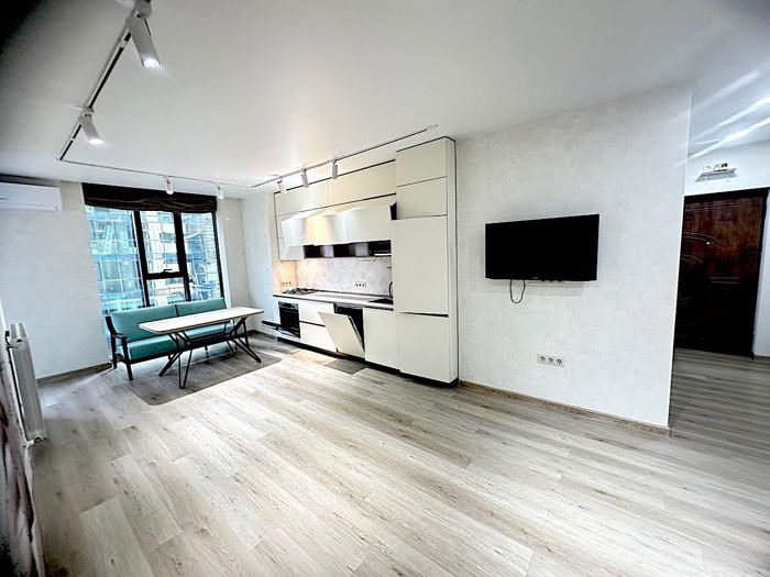 Two-room apartment 1+1 63 m2 for sale in European style. The apartment is sold fully furnished, with built-in appliances, and has been renovated with expensive materials. Floor 20 of 33 — beautiful view of the Alley of Heroes and the sea. The apartment has gas heating and heated floors. Restaurants within walking distance. Pharmacies. Carrefour supermarket and Batumi Mall, football stadium. The complex has underground parking, an outdoor pool, a spa, and a gym. The balcony offers a side view of the sea and the House of Justice. Luxurious tourist and infrastructural location - near are Carrefour supermarket and Batumi Mall, banks, pharmacies, House of Justice, and the walking Alley with access to the singing fountains. The features of the apartment's panoramic windows allow you to be inspired every day by the beauty of the Black Sea and the sunrise with a glass of Georgian wine.