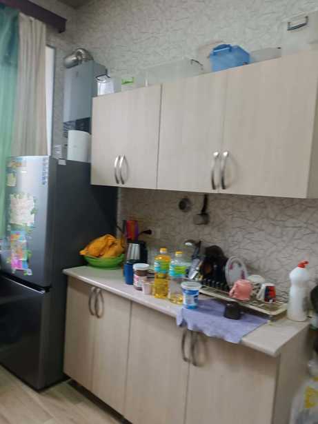 For sale: a studio-type 3-room newly renovated apartment in Rustavi! 15th micro district. With a built-in kitchen, central heating, basement, balcony, price 67,500$.