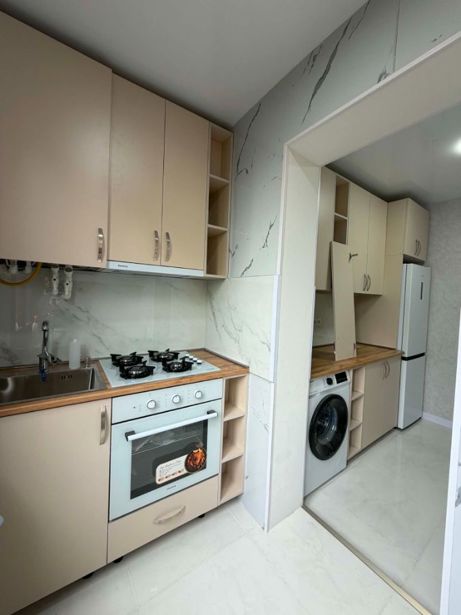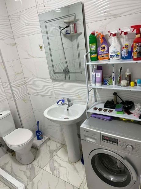 For sale: a 3-room newly renovated apartment in Rustavi! Microdistrict 20. With a built-in kitchen, central heating, refrigerator, washing machine, cellar, price 65,000$.