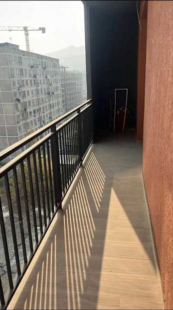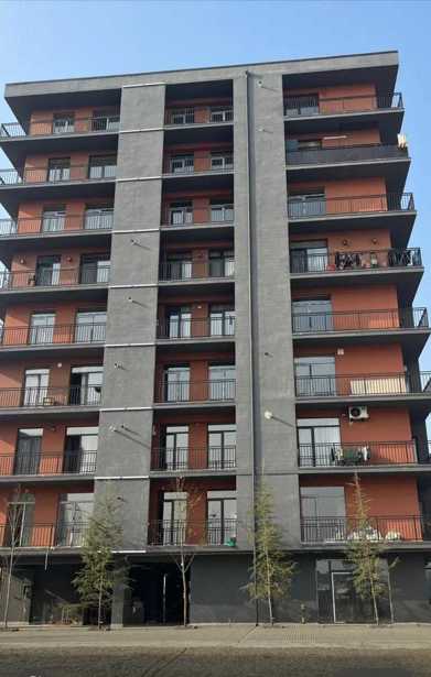 In the city of Rustavi, on the central street of Shartava Avenue, a newly built 70 square meter sunny apartment with balconies is for sale in a building that has a green frame. The building is finished to modern standards, and an elevator is operational. The building is secured, and a intercom system is in operation.