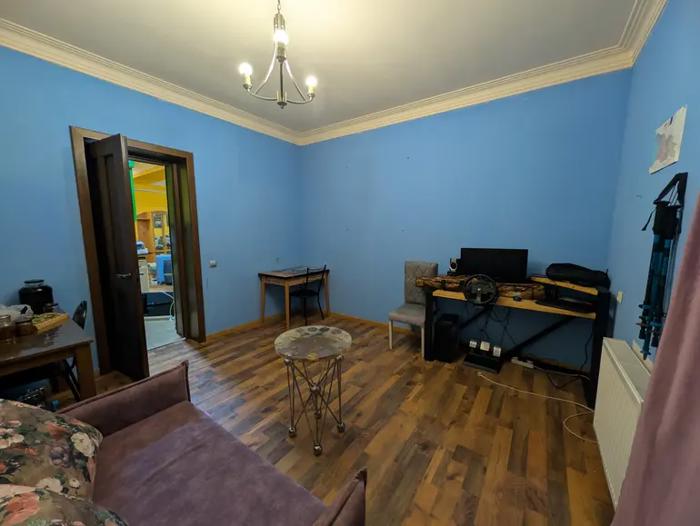A 3-room apartment is for sale in a cozy area next to the second school in old Rustavi. The apartment is bright and warm. The apartment comes with a land plot in the yard and a small basement. Price is $82,000.