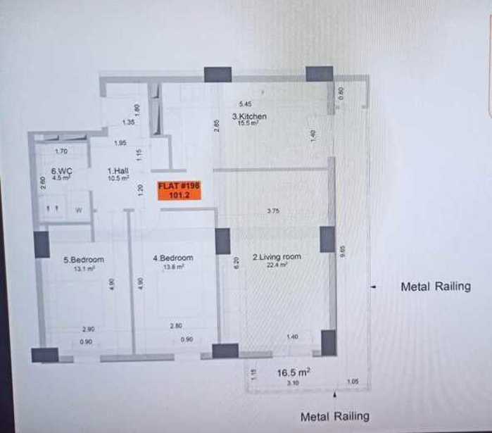 For sale is a 4-room apartment in a newly built complex. 3 bedrooms with natural light, 2 bathrooms, a dressing room, a kitchen + a common studio room. View of the yard and the Mtkvari River. Total area 100 sq.