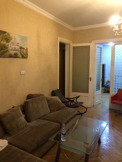 A 3-room high-ceiling (3.20) apartment is for rent on Rustaveli Avenue near the Opera. Second floor of a five-story building. Total area 110 m2 furnished and equipped. Closed yard and parking. Entrance from the staircase. With two bathrooms, kitchen, and a loggia. In the House of Academics. With an elevator. For 18 months, extension is possible. Real estate agencies do not call.