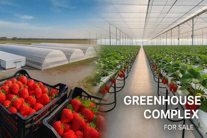 🌿 Exclusive offer – a functioning, fully equipped greenhouse farm in the Marneuli municipality. Exclusively available! Offered for sale or considers any type of investment – a functioning, fully equipped greenhouse farm in the Marneuli municipality. 📐 Land area and scale of the greenhouse Total land area: 3 ha (30,000 m²) Of this, 5,500 m² is occupied by a greenhouse equipped with modern technology, produced in Israel. Greenhouse construction: Galvanized round metal structures. Covered with a seven-layer Israeli greenhouse film. ⚙️ Technologies and engineering systems The greenhouse is equipped with: Heating system Drip irrigation system Automatic control units Ventilation, cooling, humidity, and air circulation systems. 💧 Water system and filtration: It features a reverse osmosis unit that transforms well water into purified clean water. 🔌 Communications and resources on-site All necessary communications are installed on the site: Three-phase electricity – 50 kW. Fully installed sewage system. Well – 70 meters deep, with a flow rate of 12-15 tons/hour. 🏢 Additional infrastructure and buildings There are multifunctional buildings on the territory, including: Refrigerated farm – 25 m³ Warehouse, guard point Office and residential building. ◾ Security: The object is equipped with surveillance and security systems. Automatic outdoor lighting is installed around the entire perimeter. 🌱 Current state and crop potential Currently, the greenhouse needs plant renewal. However: fully functional infrastructure. All engineering systems allow the buyer to immediately renew and develop any greenhouse direction, including: Tomatoes, cucumbers, lettuce, strawberries. Greens and other crops. 🚚 Brand, equipment, and team The asset comes with: Its own registered brand. Two refrigerated van trucks (Mercedes, 1-2 tons). Trained, professional staff who are familiar with both the specifics of the greenhouse and the technological processes. 🛣 Location and development prospects Construction of a highway is already underway near the territory, significantly improving: Logistics Delivery routes Future development prospects. ✔ The plot is also suitable for any other commercial purpose, including: Warehouse-logistics center. Light manufacturing, factory. Agro-working center and more. 📞 For more information Contact us: This is a greenhouse complex based on ready infrastructure, technically equipped, waiting for a new investor – for development, scaling, and continuation of a profitable agribusiness. 🌿🏭✨