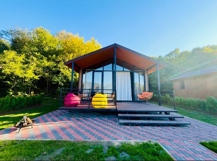 We offer you a vacation in the village of Tushuri in Tianeti with all kinds of comfort and pleasant landscapes. Enjoy the spring in our cottages. The price for weekdays is 200 Lari. The price for weekends is 250 Lari. In case of booking for more than 2 days, we offer discounts. Enjoy a peaceful environment and savor pleasant moments. The cottages are equipped with: All kinds of furniture and appliances. Swing chairs and poufs. Covered areas and a gazebo. Coffee, tea, wine. Hygienic items for single use. Skewers. We do not offer internet; we only provide the enjoyment of nature. The cottages are adapted for solitary relaxation, romantically spending time, and also for hosting parties in nature; spending evenings by the bonfire is especially pleasant this season. Just get up and book right now.
