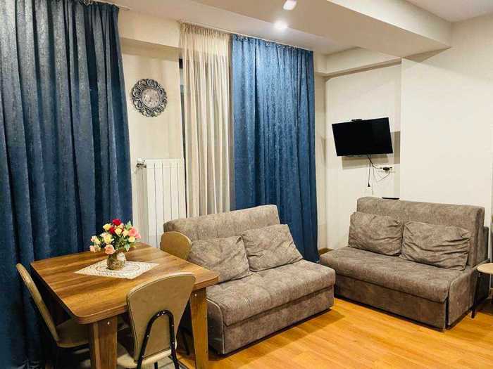 A studio-type apartment is for rent in a newly built residential complex. Completely new, uninhabited, with modern renovation, fully furnished with quality furniture and household appliances. With a swimming pool. The apartment is located 300 meters from the beach. Shopping center near Metro City. Monthly rental is also possible until the end of May. 800₾