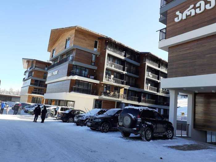 In Bakuriani City, Tsakadze 14. Furnished studio for rent, the apartment is fully equipped (dishes, gas, refrigerator, washing machine, hair dryer, iron). There is a parking space and children s entertainment area in the yard. It has a reception and security. There is a kitchen where you can take out the desired meal. It is located at Tsakadze 14.