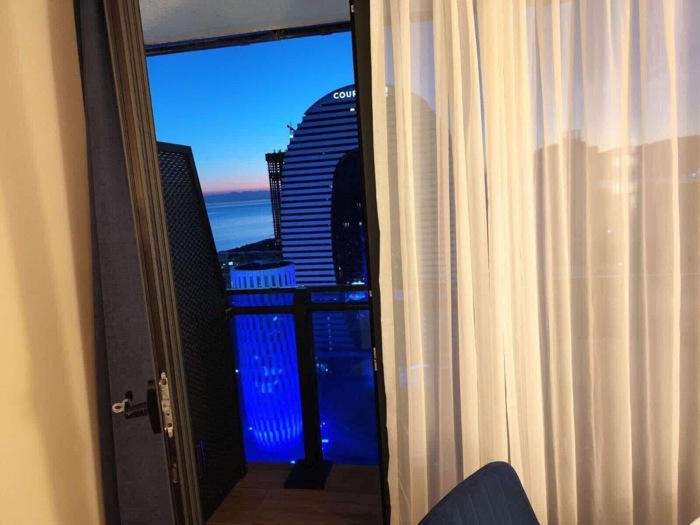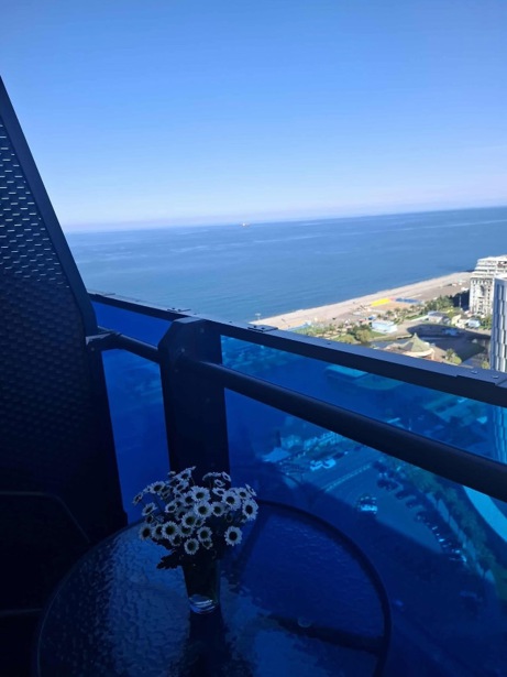 For daily rent, customs office number. Block C in Sherif Khimshiashvili 7D complex. 6th floor of Orbi City, with sea and mountain views. in the first strip of the sea. New renovation and furniture. 33 sq/ m. with an additional pull-out bed. Can fit 3 people.