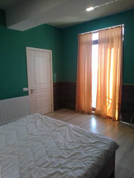 We offer an apartment in a studio-type hotel at Crystal Residence for 2+1 persons, which is equipped with everything. WiFi, TV, balcony, furniture, hairdryer, electric stove, safe, iron, dining table, kitchen inventory, elevator, the complex is located towards Didveli, near the forest, which has its own forest park, a secured yard, and a children's recreation area. The forest park has a concrete path for pedestrians, seating areas, hammocks, night lighting, as well as a mini football stadium. The hotel has an indoor pool, restaurant, bar, fitness room, and everything you need for an ideal vacation. The guest has the opportunity to rent only the hotel apartment, and if desired, to use various services. The price depends on the number of days and the period.