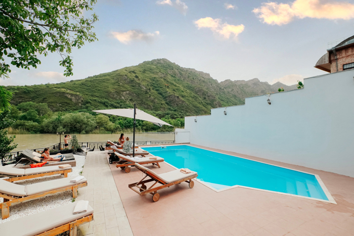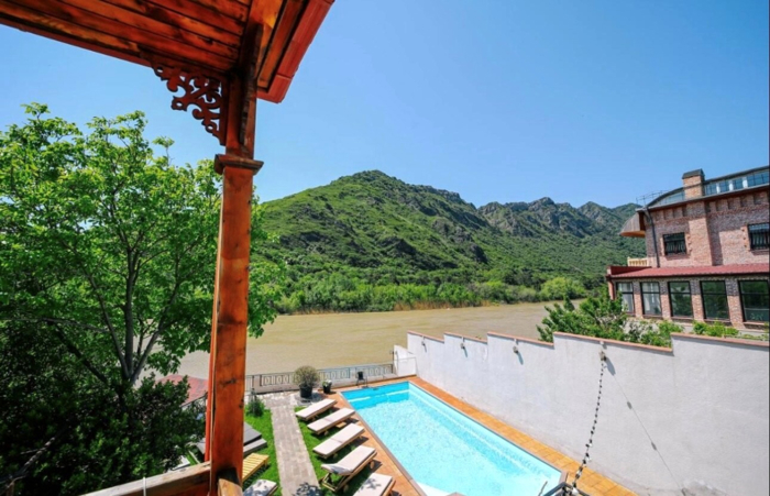 A functioning hotel in Mtskheta is for sale, with an open pool, a cafe bar, the hotel has a high rating, beautiful views,