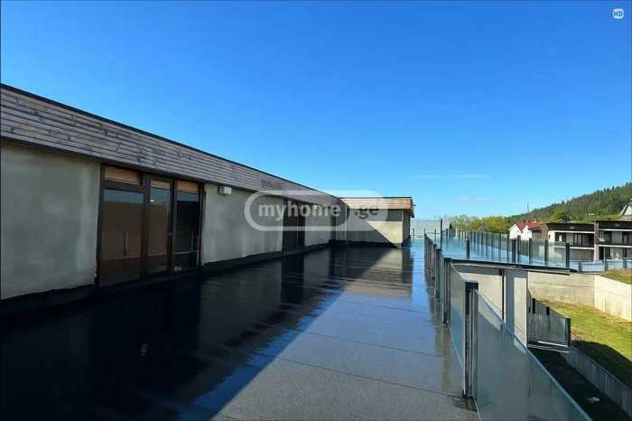 Commercial spaces for sale at the Labau project in Mghazrebis, 98 residential apartments, and an underground parking, totaling 8,028 sq.m. Located on Koba Tsakadzis Street in front of Mghazrebis Panorama. With the best views, on the top floor with a terrace. The apartments are available in both white frame and black frame conditions.