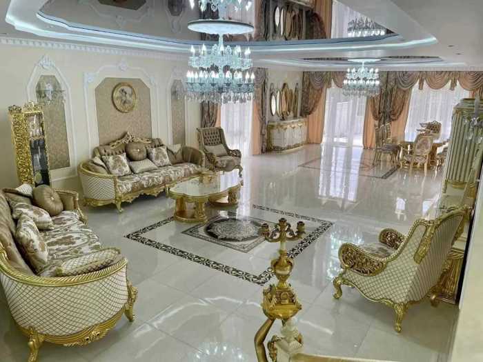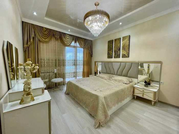 For sale, a 3-story villa with a panoramic sea view in Chakvi, by the sea. The villa is furnished with high-quality furniture made in the United Arab Emirates, has a swimming pool, sauna, fitness room, billiard room, 4 bedrooms, a 100 sq.m living room, a veranda with a beautiful sea view, and a terrace in the yard. This house style is characterized by elegance, symmetry, high walls, and stained glass. You will also find antique items, sculptures, and flooring typical of this style in the house. The house is equipped with a 12-camera security system and alarm. The total area of the house is 600 sq.m. The total area of the yard is 940 sq.m. 15 minutes away by car from Adjara. Price $750,000.