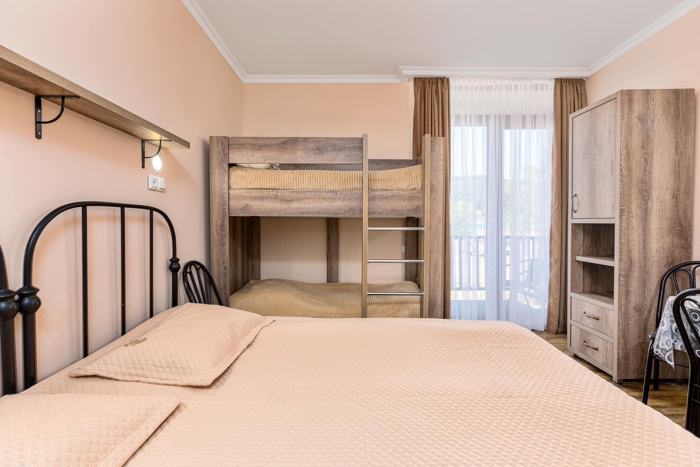 The best offer, annual income 14% - 17% from business fees, ready and running business, beautiful family hotel for sale in Bakuriani. The building is located between the Tatra - Poma and Kristali ski slopes, near the forest and away from the highway, in a quiet and peaceful environment. The yard area is 800 sq m on which the hotel stands, . It has 11 rooms and 13 bathrooms, as well as a kitchen, bar, fireplace, storage room and parking. Ski and ski boot storage. Ski boot drying. There is a road, natural gas, water (also drinking), sewage, central heating. The supermarket is located 10 minutes walk away. There are several restaurants around. It has a beautiful view of Didveli Mountain. It is built of andesite stone. Merbau wood flooring of the highest quality, contact me for detailed information Anastasia
