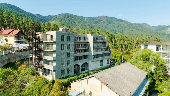 For sale in Borjomi, across from the Romanov Palace - a 6-story hotel that includes a restaurant space, pool, spa, massage, terrace, reception, 3 elevators, and amazing views of the entire Likani and Borjomi. It has an ideal location. Interested parties may call me.