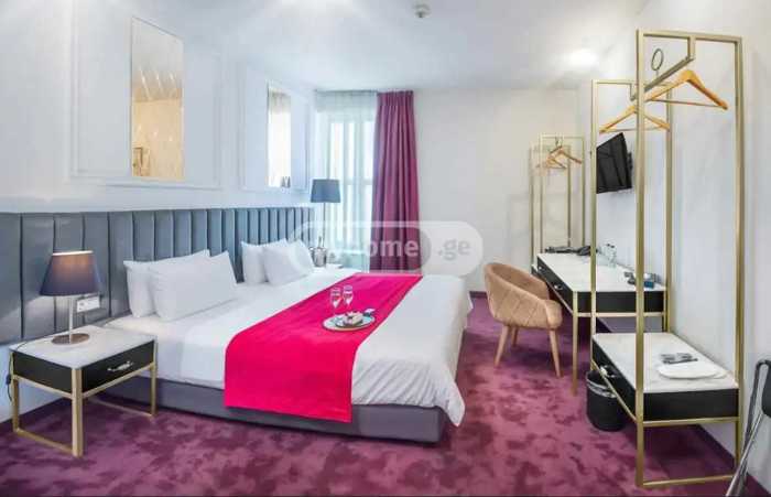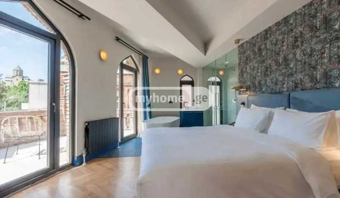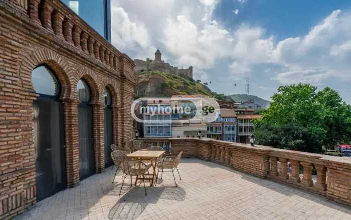 For sale: a functioning hotel with restaurants! The hotel is located in a unique location in old Tbilisi. The building has an unparalleled terrace with a 360° view of Tbilisi's landmarks. The interior is characterized by warm colors, elegant furniture, and various decorations that create a comfortable atmosphere for any guest. The area of the hotel is 1605 sq. m, which includes 28 rooms, balconies, a reception area, 2 restaurants, and an amazing terrace on the top floor with a roofing permit.