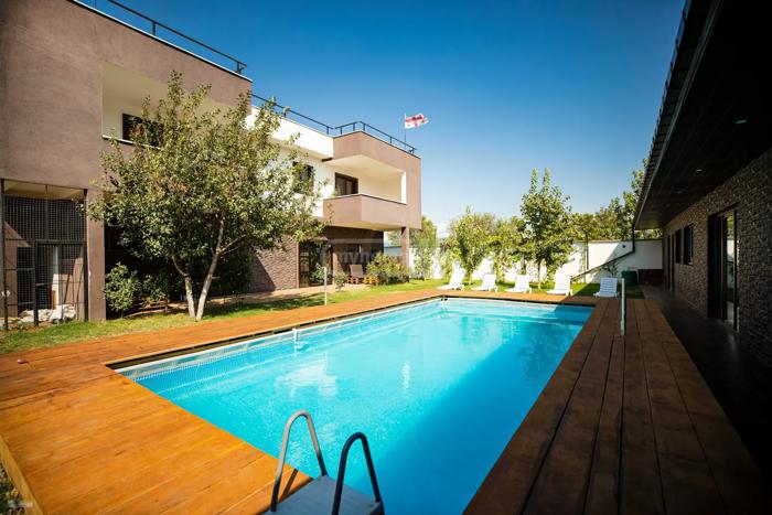 For sale is a multifunctional residential complex in the village of Dighomi. It consists of 8 bedrooms, 2 living rooms, 2 garages, a cellar, a dining room, a fitness hall, a sauna, and a pool 10*5 m, as well as a security room. A fruit-bearing garden has been cultivated in the yard: apples, cherries, plums, walnuts, and a vineyard. It can be used for both private use and commercial purposes. It is fully equipped with furniture and household appliances. The complex is registered in the public registry and has been put into operation. Tel 599812200
