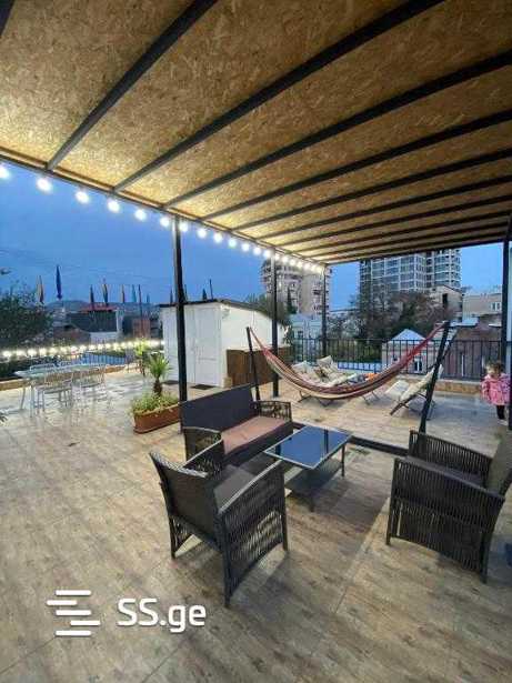 პოლიკარპე კაკაბაძე 51მიწის ფართობი 383 კვ.მშენობის ფართობი 1700 კვ.მ7 სართული ლიფტი, ადატპირებული შშმ პირებისთვის, გარემონტებული, სრულად გაწყობილი, ცენტრალური გათბობით, კონდიცირებით, სახანძრო სისტემით, სახანძრო გასასვლელი ყველა სართულზე, ყველა ოთახსა და სივრცეს აქვს აივანი და smart key doors, 200 კვ.მ წინა ეზო გამწვანებით და აუზით. 0 სართული საკომფერენციო დარბაზი, ადმინისტრაცია, ადმინისტრატორის კაბინეტი, 4 ოფისი, საპირფარეშო.1 სართული 8 სტანდარტული ოთახი2 სართული 5 სტანდარტული და 2 ოროთახიანი ოთახი3 სართული 5 სტანდარტული და 2 ოროთახიანი ოთახი4სართული360 გრადუსი ვერანდით და ვიტრაჯული ოროთახიანი ოთახი და 1 სტანდარტული 1 სართული 3 სტანდარტული ოთახი, 1 ოფისი, საუნა, ტრენაჟორის დარბაზი, საპირფარეშო2 სართული სამზარეულო, საკომფერენციო დარბაზი, 80 კვ.მ ვერანდა, საპირფარეშო3 სართული სამრეცხაო 100კვ.მ (პერსონალის სივრცე)