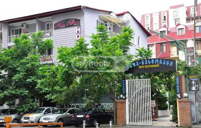 In the city center, near the sea, adjacent to the central park, a 16-room hotel with a beautiful yard and open cafe is for sale; each room has an independent bathroom with hairdryer, TV, air conditioner, small refrigerator (mini-bar), electric kettle; the building has 11 balconies; 2 fireplaces; security system with video cameras for indoor and outdoor perimeter; the hotel has a beautiful green yard, open cafe and artificial pool. The hotel also has a restaurant. The hotel's building is located in the city center, adjacent to Batumi's May 6 Park, 5 minutes walk from the sea via the park and dolphinarium (the said route is also suitable for driving). The building is located between Gorgiladze Street and the dolphinarium. The building can be used for various purposes, such as a hotel, office, school, kindergarten, clinic, aesthetic center, and more. Considering the currently existing construction regulations in Georgia, the free land plot allows for the addition of at least the same size building. Expansion of the building is possible.