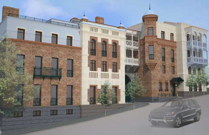 For sale, in Abanotubani, a plot of land of 980 sq.m. with a unique location and a 50-meter facade. A hotel project is agreed on the plot with a construction area of up to 1500 sq.m - the plot is also suitable for elite residential development.