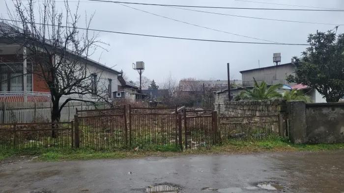 Flat non-agricultural land plot of 1200 m² in the private sector of Poti. All communications are connected. There is a small wooden house on the plot. Many fruit trees. 1 km to the sea!